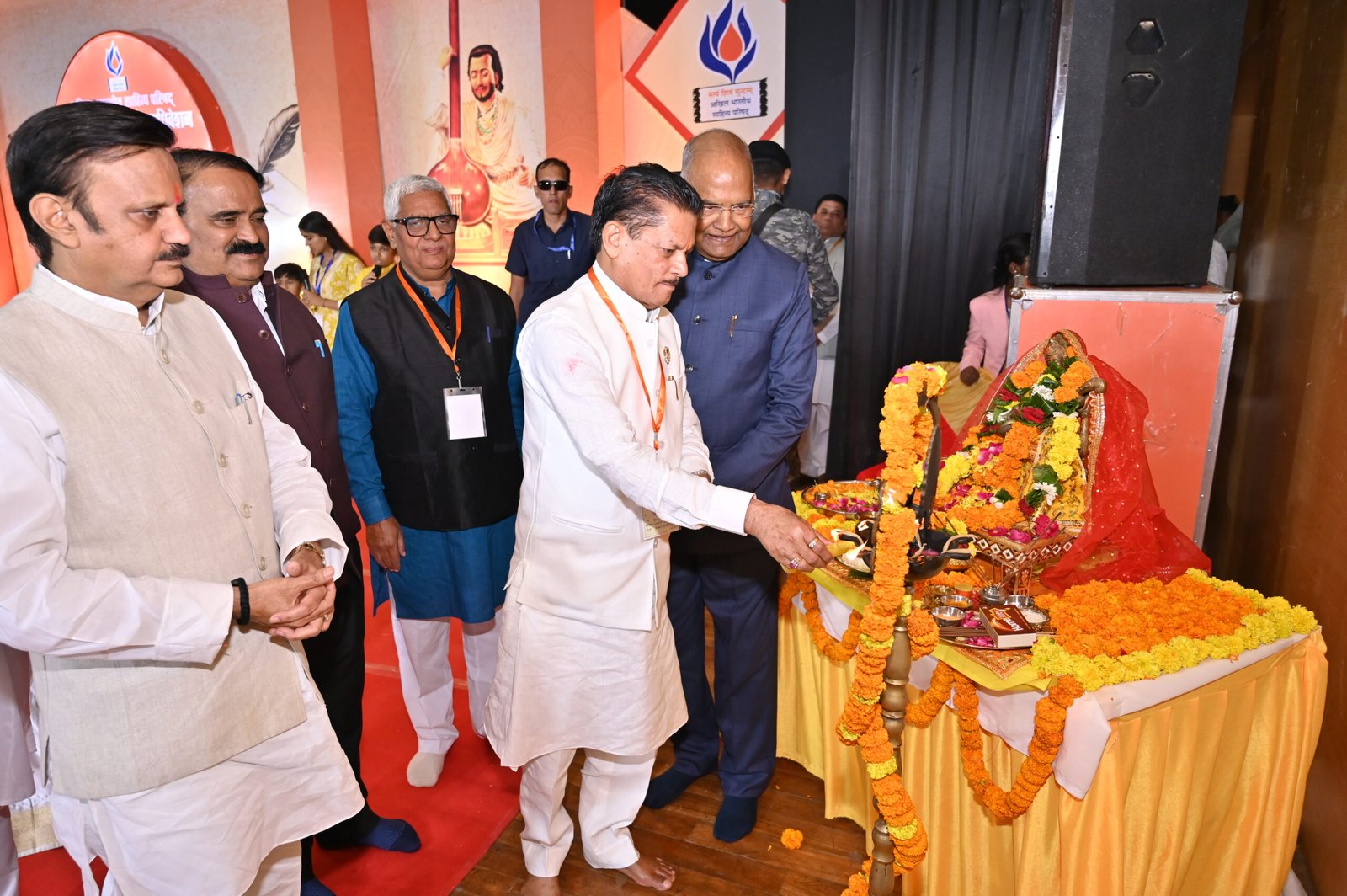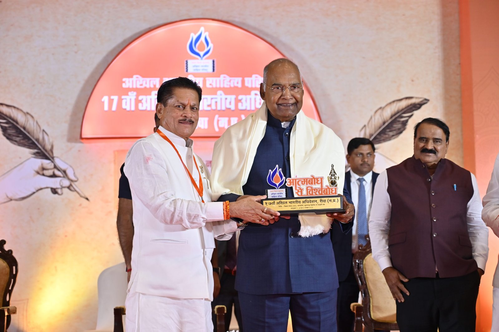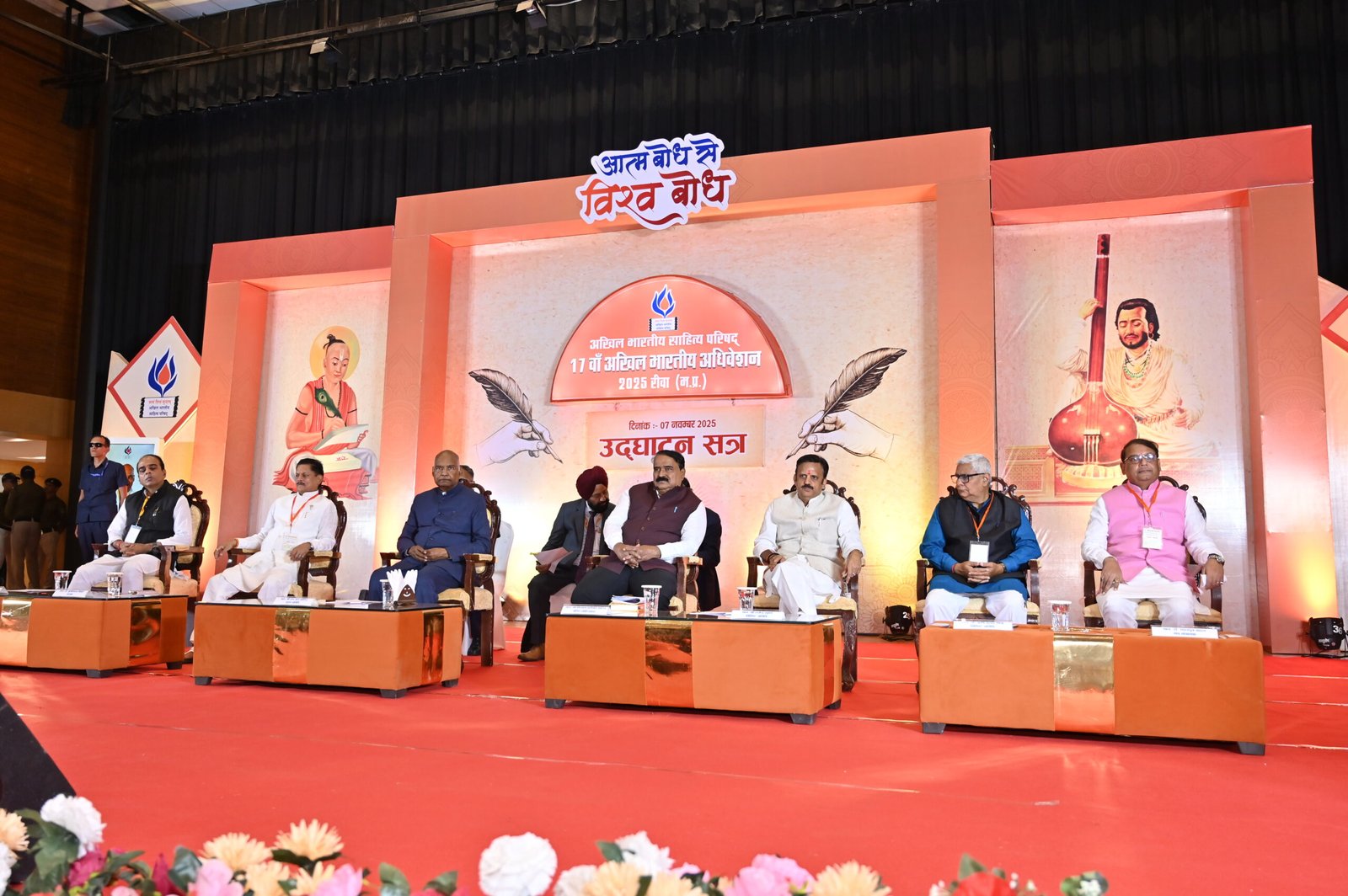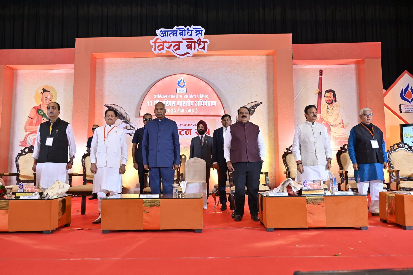 अखिल भारतीय साहित्य परिषद के १७ बे अधिवेशन का शुभारम्भ करते हुए भारत गणराज्य के पूर्व राष्ट्रपति आदरणीय राम नाथ कोबिन्द जी , वरिष्ठ साहित्यकार श्री विश्वास पाटिल जी , मध्यप्रदेश के उप मुख्यमंत्री श्री राजेन्द्र शुक्ल जी ,आदरणीय डॉ सुशील जी , आदरणीय श्रीधर पराड़कर , श्री ऋषी जी ,भव्य शुभारम्भ .