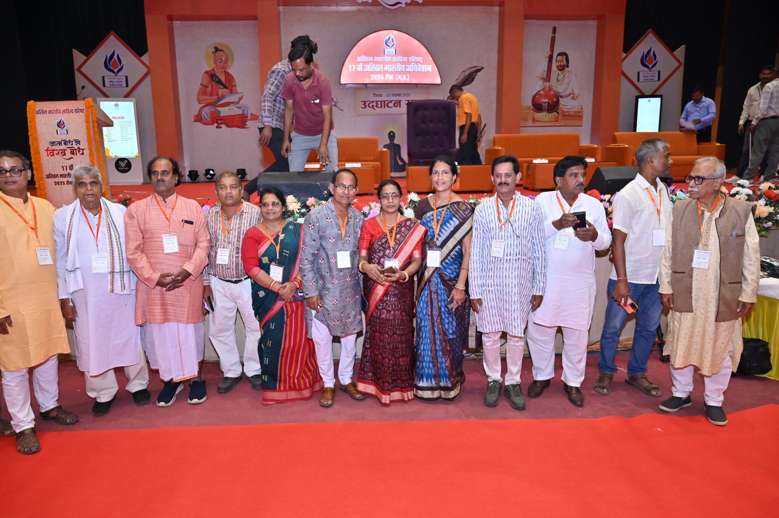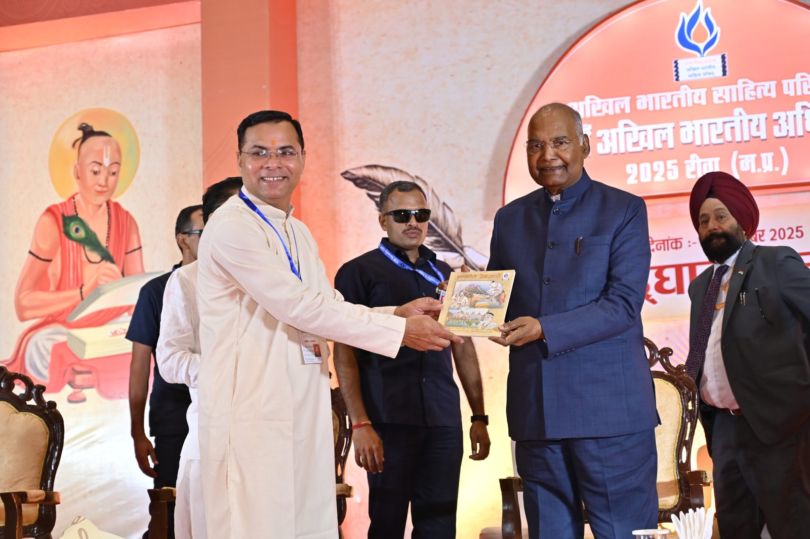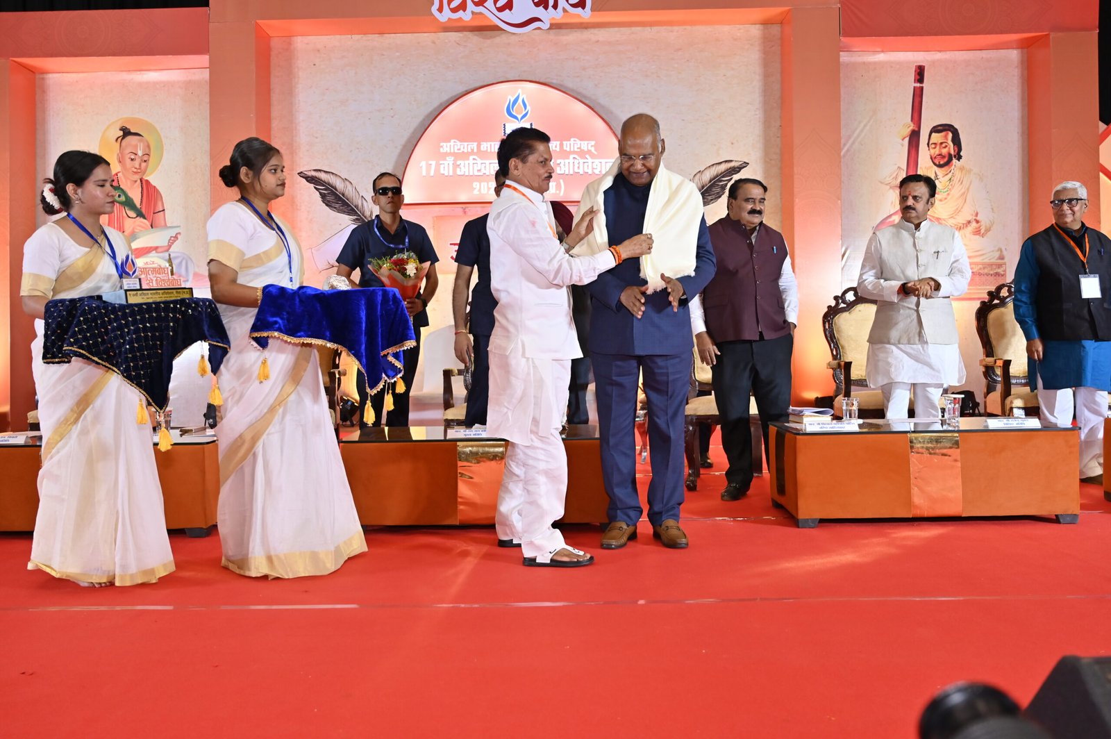 अखिल भारतीय साहित्य परिषद के १७ बे अधिवेशन का शुभारम्भ करते हुए भारत गणराज्य के पूर्व राष्ट्रपति आदरणीय राम नाथ कोबिन्द जी , वरिष्ठ साहित्यकार श्री विश्वास पाटिल जी , मध्यप्रदेश के उप मुख्यमंत्री श्री राजेन्द्र शुक्ल जी ,आदरणीय डॉ सुशील जी , आदरणीय श्रीधर पराड़कर , श्री ऋषी जी ,भव्य शुभारम्भ .
