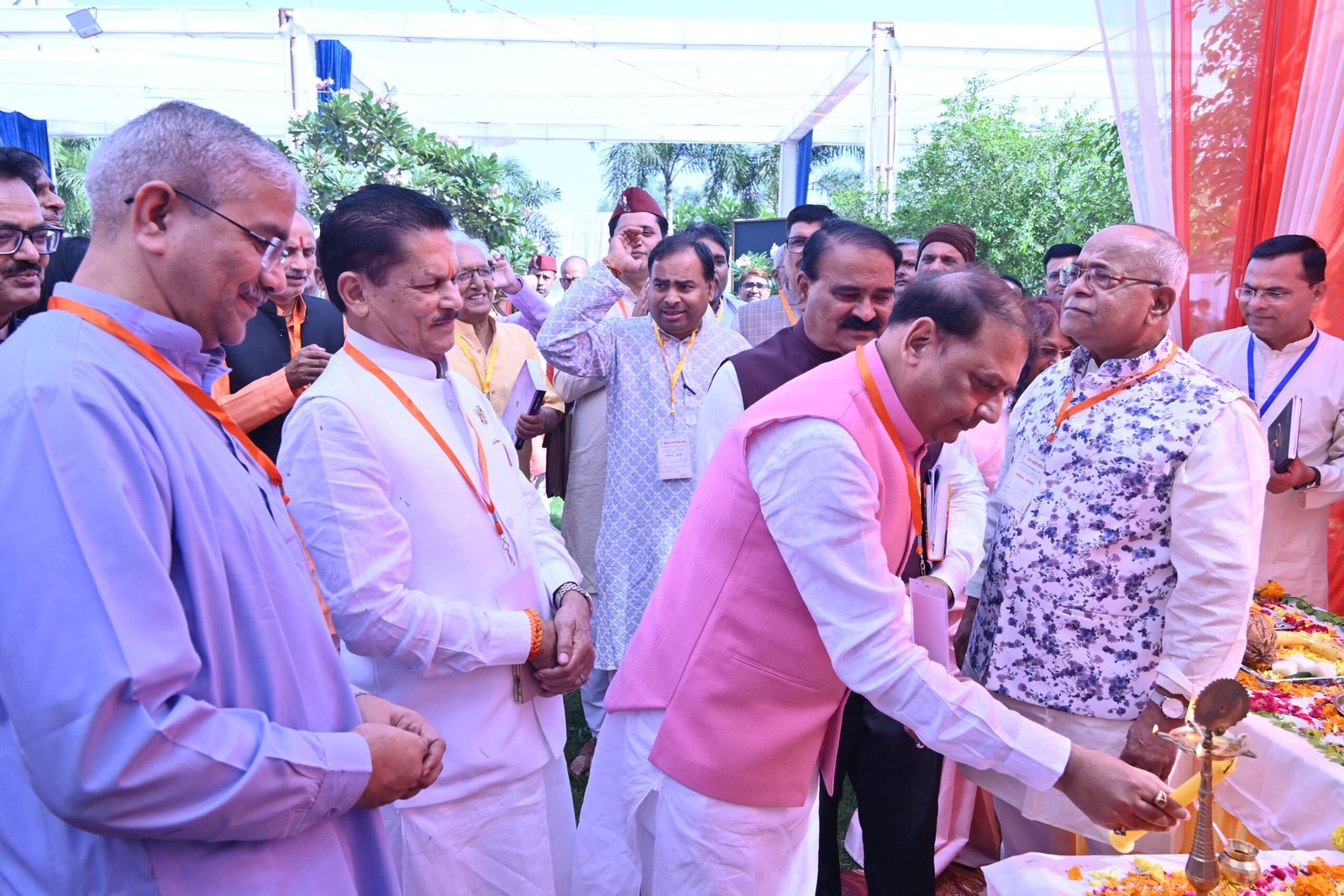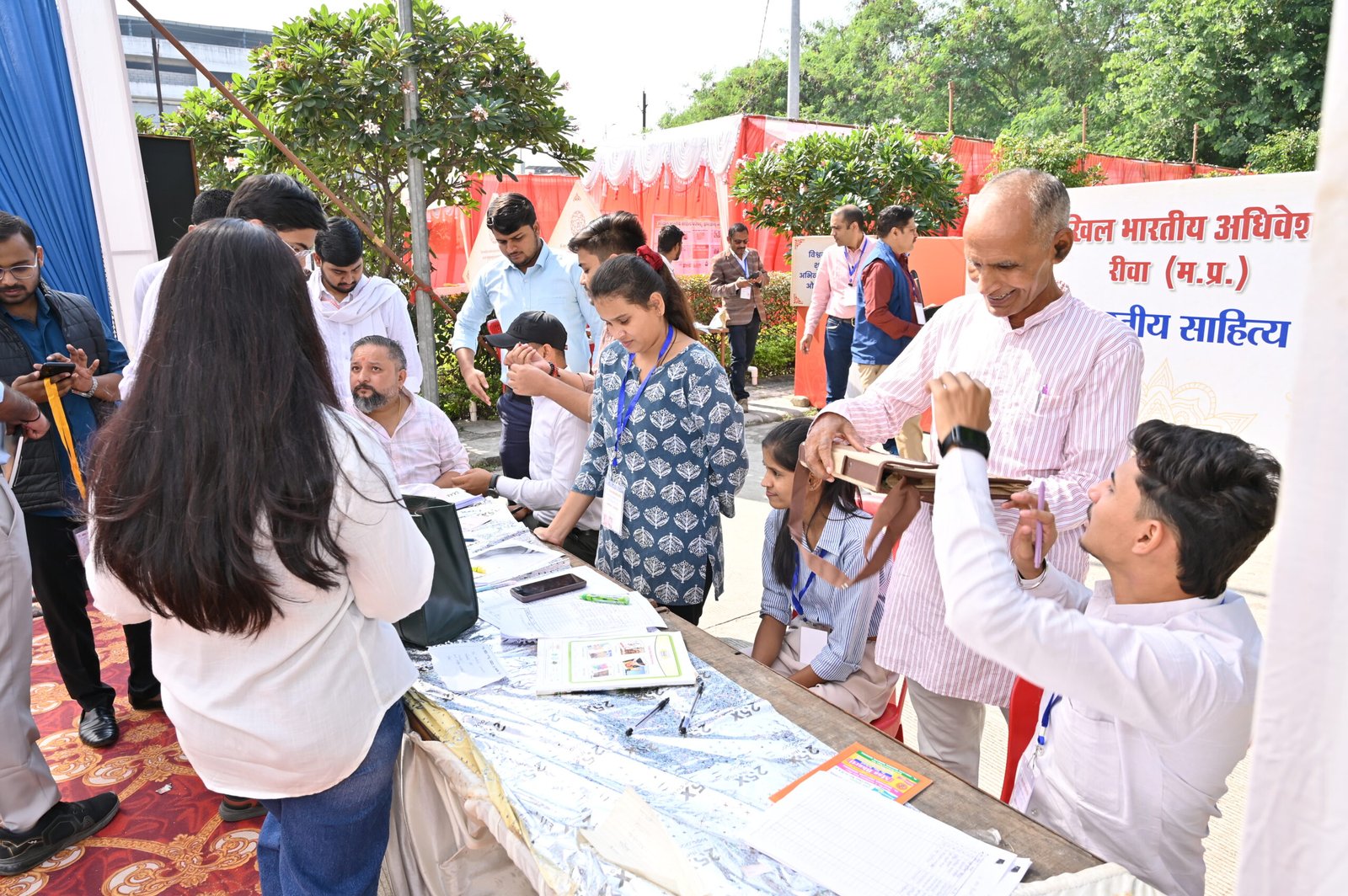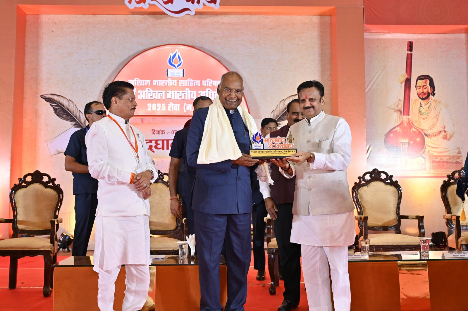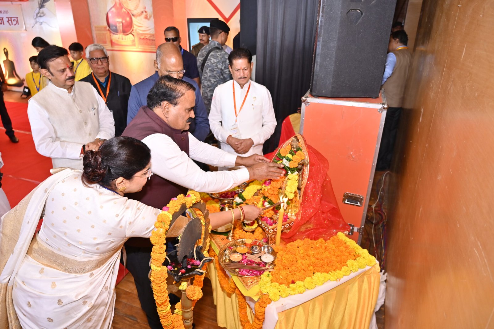 अखिल भारतीय साहित्य परिषद के १७ बे अधिवेशन का शुभारम्भ करते हुए भारत गणराज्य के पूर्व राष्ट्रपति आदरणीय राम नाथ कोबिन्द जी , वरिष्ठ साहित्यकार श्री विश्वास पाटिल जी , मध्यप्रदेश के उप मुख्यमंत्री श्री राजेन्द्र शुक्ल जी ,आदरणीय डॉ सुशील जी , आदरणीय श्रीधर पराड़कर , श्री ऋषी जी ,भव्य शुभारम्भ .