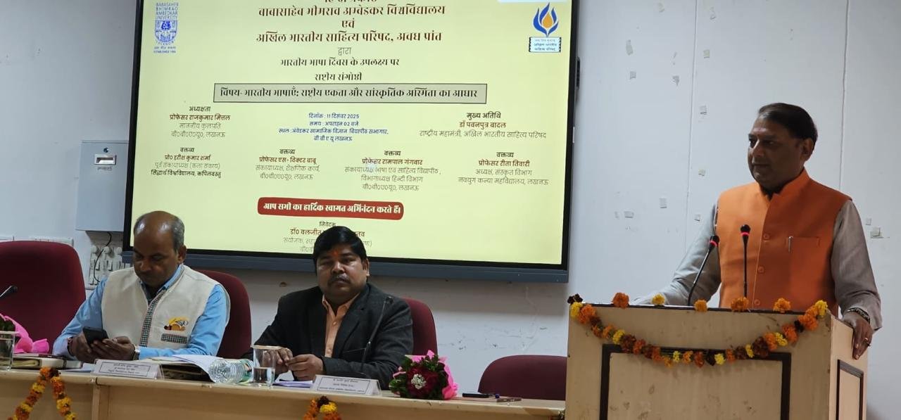 भारतीय भाषा दिवस पर साहित्य परिषद् अवध और बाबासाहब भीमराव अम्बेडकर केंद्रीय विश्वबिद्यालय के संयुक्त तत्वाधान में आयोजित कार्यक्रम में कुलपति आचार्य राजकुमार मित्तल जी , प्रो हरीश शर्मा , प्रो रीता जी , संयुक्त महामंत्री अवध डॉ बलजीत जी , डॉ गंगवार जी सहित विद्वत जन , साहित्यकार और शोद्यार्थी उपस्थित रहे